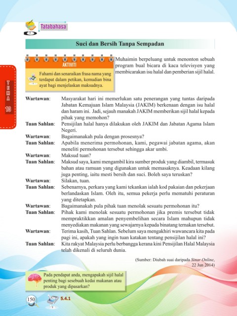 Fahami dan senaraikan frasa nama yang membicarakan isu halal dan pemberian sijil halal.
