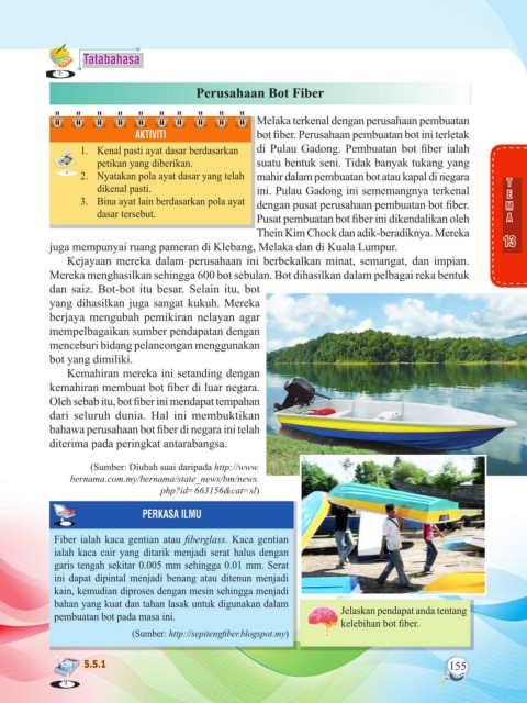 1. Kenal pasti ayat dasar berdasarkan di Pulau Gadong. Pembuatan bot fiber ialah