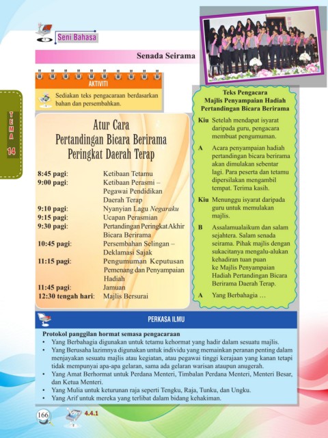 Sediakan teks pengacaraan berdasarkan Teks Pengacara