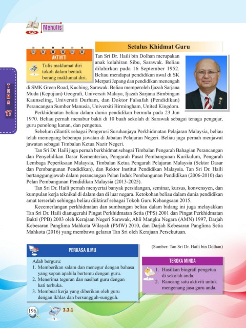 1. Memberikan salam dan menegur dengan bahasa 1. Hasilkan biografi pengetua