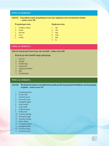 Aktiviti: Kenal pasti kata kerja tak transitif – muka surat 186