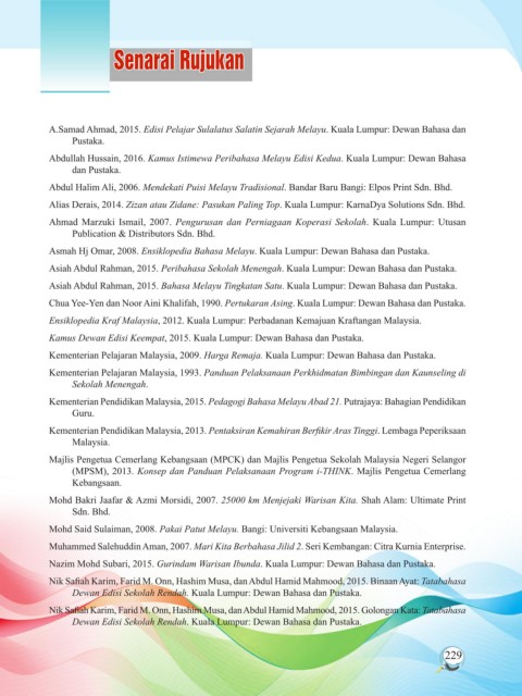Asiah Abdul Rahman, 2015. Bahasa Melayu Tingkatan Satu. Kuala Lumpur: Dewan Bahasa dan Pustaka.