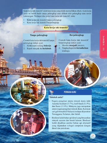 keterangan. Terdapat dua jenis kata kerja tak transitif, iaitu: