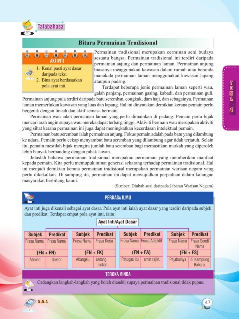 dan predikat. Terdapat empat pola ayat inti, iaitu: