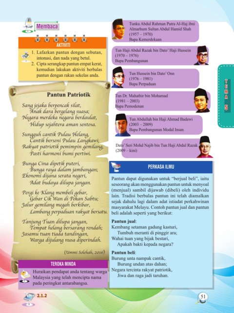 1. Lafazkan pantun dengan sebutan, Tun Haji Abdul Razak bin Dato’ Haji Hussein