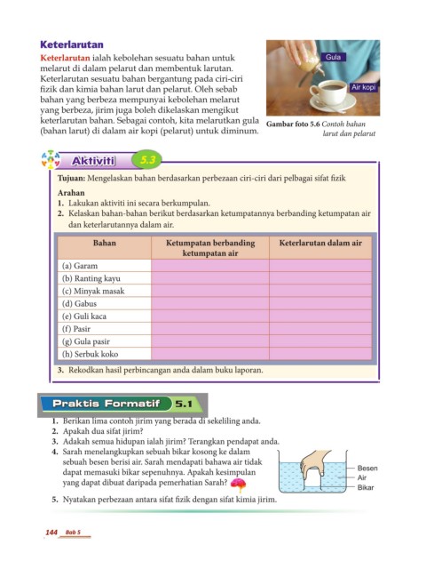 keterlarutan bahan. Sebagai contoh, kita melarutkan gula Gambar foto 5.6 Contoh bahan