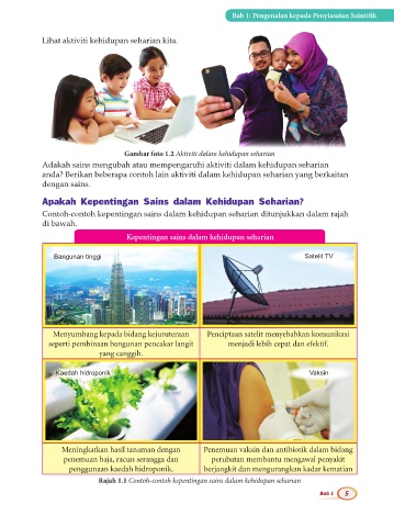 Rajah 1.1 Contoh-contoh kepentingan sains dalam kehidupan seharian