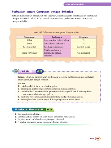 Jadual 6.2 Perbezaan antara campuran dengan sebatian
