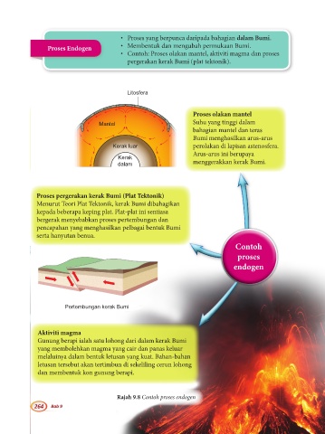 • Contoh: Proses olakan mantel, aktiviti magma dan proses