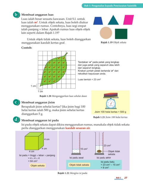d Membuat anggaran isi padu Rajah 1.21 Jisim 100 helai kertas