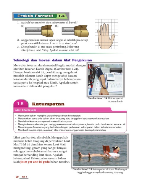 Gambar foto 1.25 Ketumpatan air Laut Mati sangat