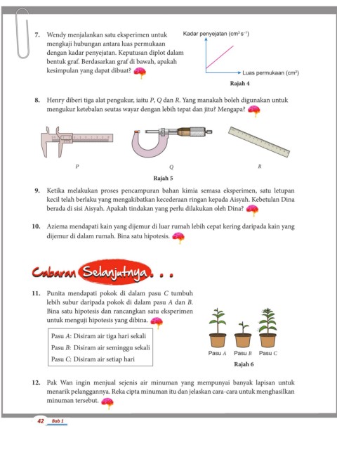 7. Wendy menjalankan satu eksperimen untuk Kadar penyejatan (cm s )
