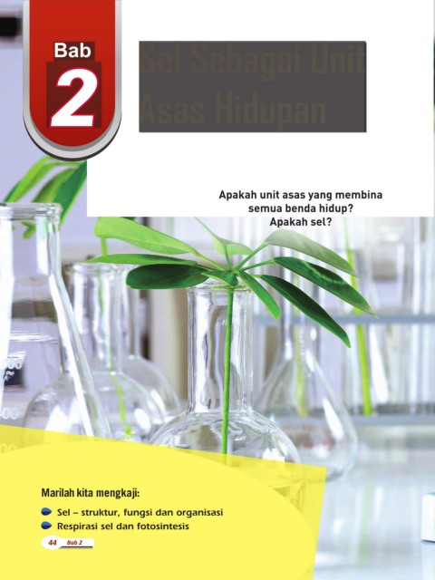 Bab Sel Sebagai Unit 2 Asas Hidupan Apakah unit asas yang membina semua benda hidup? Apakah sel? Marilah kita mengkaji: Sel – struktur, fungsi dan organisasi Respirasi sel dan fotosintesis 44 Bab 2 44 Bab 2