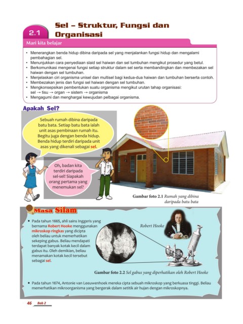 • Menerangkan benda hidup dibina daripada sel yang menjalankan fungsi hidup dan mengalami