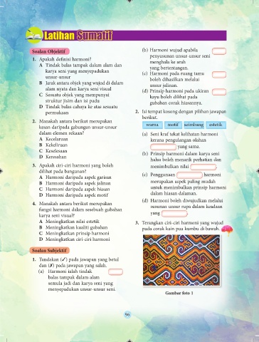 A Meningkatkan nilai estetik 3. Terangkan ciri-ciri harmoni yang wujud