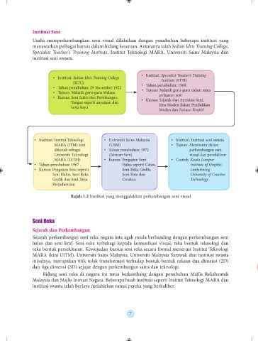 Rajah 1.2 Institusi yang menggalakkan perkembangan seni visual