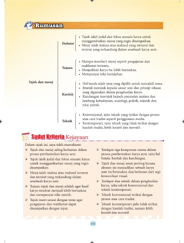 Ø Tajuk ialah judul dan fokus sesuatu karya benda, bentuk dan kandungan.