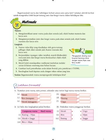 2. Menginterpretasikan jenis dan fungsi warna pada alam semula jadi, objek buatan