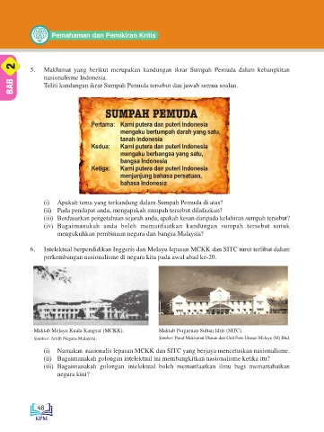 2 5. Maklumat yang berikut merupakan kandungan ikrar Sumpah Pemuda dalam kebangkitan