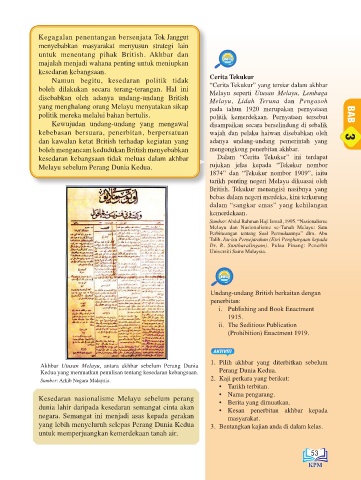 Kedua yang memuatkan penulisan tentang kesedaran kebangsaan. Perang Dunia Kedua.