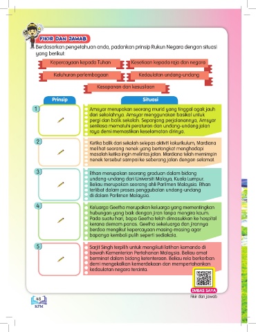 Berdasarkan pengetahuan anda, padankan prinsip Rukun Negara dengan situasi