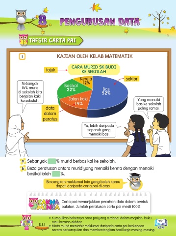 8.1.1 • Minta murid mentafsir maklumat daripada carta pai berkenaan