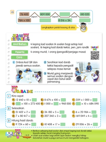 • Berikan sekeping kad soalan dan empat keping kad darab kekisi