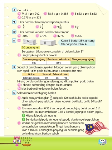 b Ibu mengeluarkan 0.35 air daripada sebuah jag berisi padu 1.5 .
