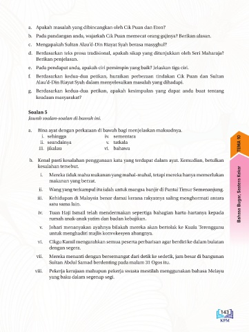 f. Berdasarkan kedua-dua petikan, huraikan perbezaan tindakan Cik Puan dan Sultan