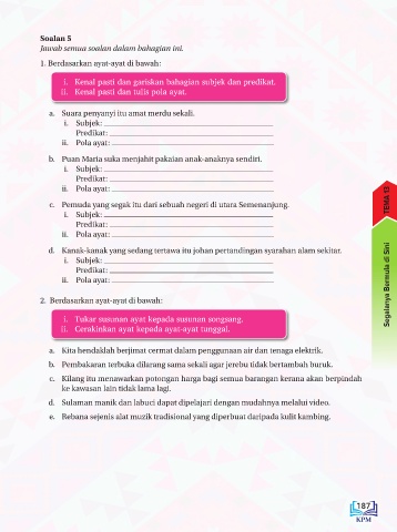 i. Kenal pasti dan gariskan bahagian subjek dan predikat.