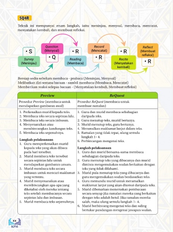 Teknik ini mempunyai enam langkah, iaitu meninjau, menyoal, membaca, mencatat,