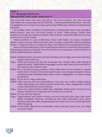 Haikal: Cikgu memang arif tentang pemakanan. Saya pula suka makan rendang daging