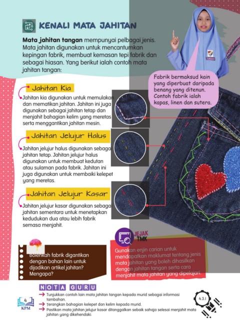 Tunjukkan contoh lain mata jahitan tangan kepada murid sebagai informasi