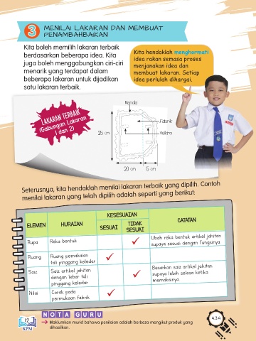 menilai lakaran yang telah dipilih adalah seperti yang berikut: