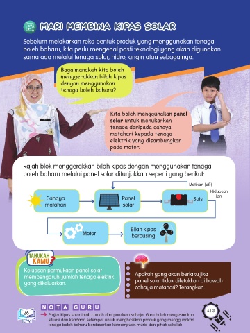 Projek kipas solar ialah contoh dan panduan sahaja. Guru boleh menyesuaikan