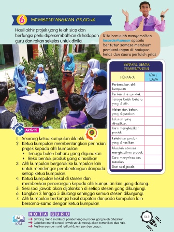 Bimbing murid membuat pembentangan produk yang telah dihasilkan.