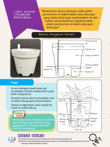 Berbincang dengan murid tentang cara sistem takungan berfungsi.