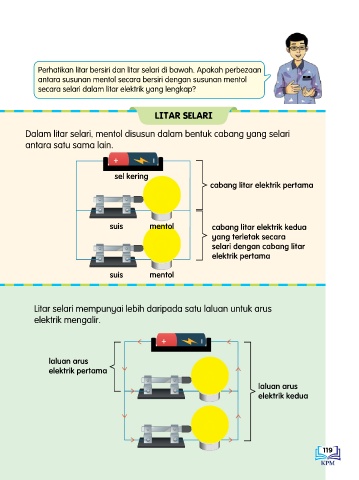 Dalam litar selari, mentol disusun dalam bentuk cabang yang selari