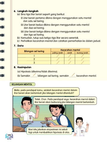 (b) Semakin _____ bilangan sel kering, semakin _____ kecerahan mentol.