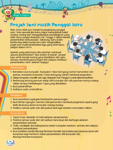 2. Setiap kumpulan memilih satu lagu daripada Unit 1 hingga 5 untuk dipersembahkan.