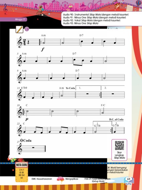 • Bagi Audio 92, rujuk skor lengkap Silap Mata seperti yang terdapat dalam kod QR. Murid bernyanyi