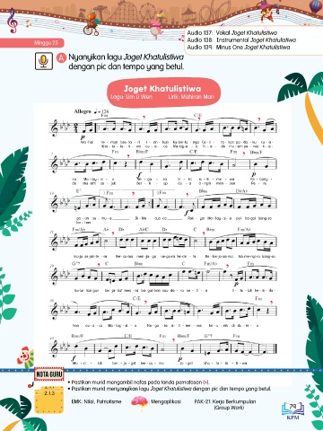 2.1.1 • Pastikan murid menyanyikan lagu Joget Khatulistiwa dengan pic dan tempo yang betul.