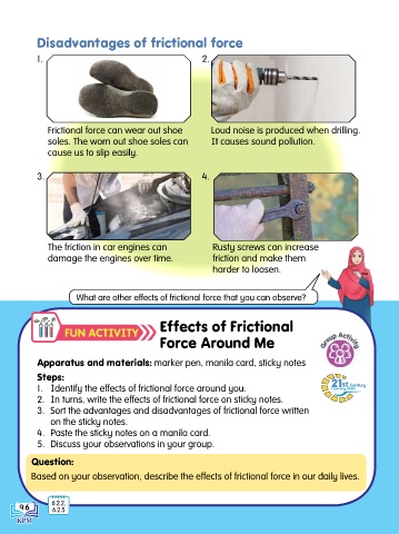 2. In turns, write the effects of frictional force on sticky notes.
