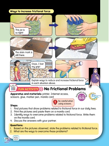 1. Based on the pictures observed, state the problems related to frictional force.