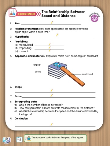 5. Apparatus and materials: stopwatch, metre ruler, books, toy car, cardboard