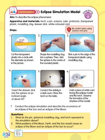 Insert the skewer stick Conduct the activity in Hold a piece of white card