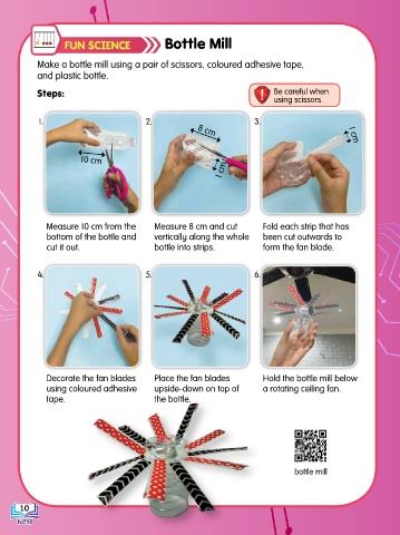 Make a bottle mill using a pair of scissors, coloured adhesive tape,