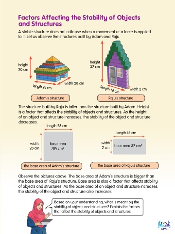 the base area of Raju’s structure. Base area is also a factor that affects stability