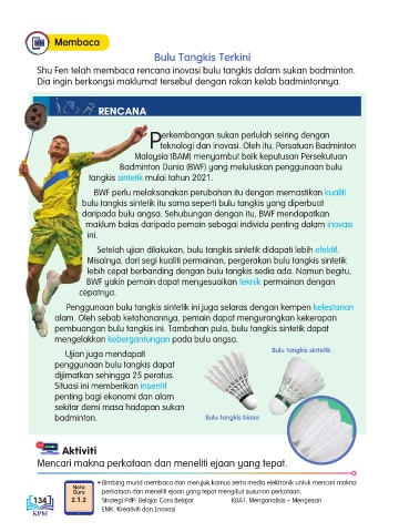 pembuangan bulu tangkis ini. Tambahan pula, bulu tangkis sintetik dapat