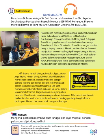 memberitahu pendengar bahawa MACC.fm ialah saluran